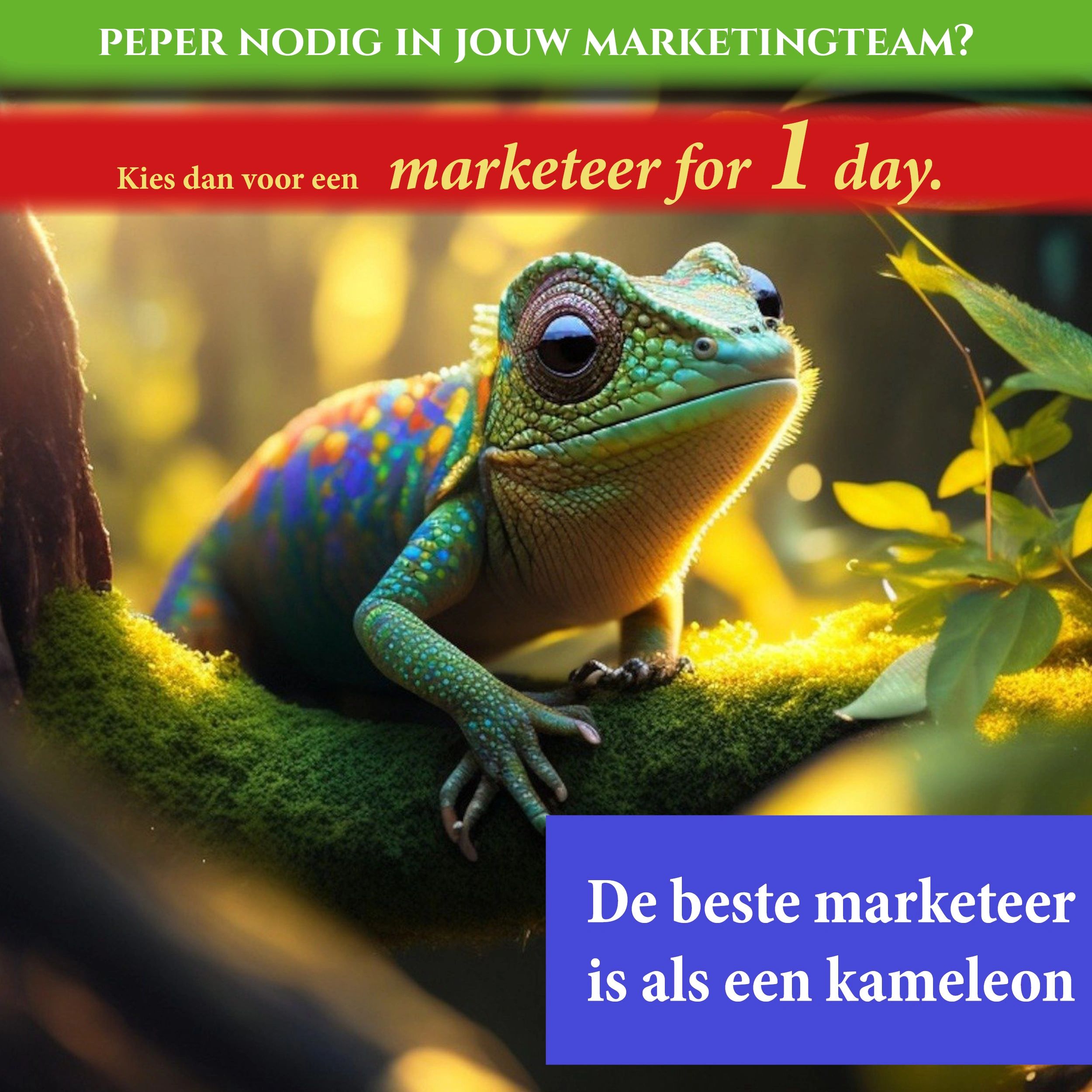 De beste marketeer is als een kameleon. Heb jij wat peper nodig in jouw marketingteam? Dan biedt een senior marketeer van Peper-Munt Marketing uitkomst! Voor één dag in de week brengt deze jou de meerwaarde die je zoekt. Met peper meer munt!
